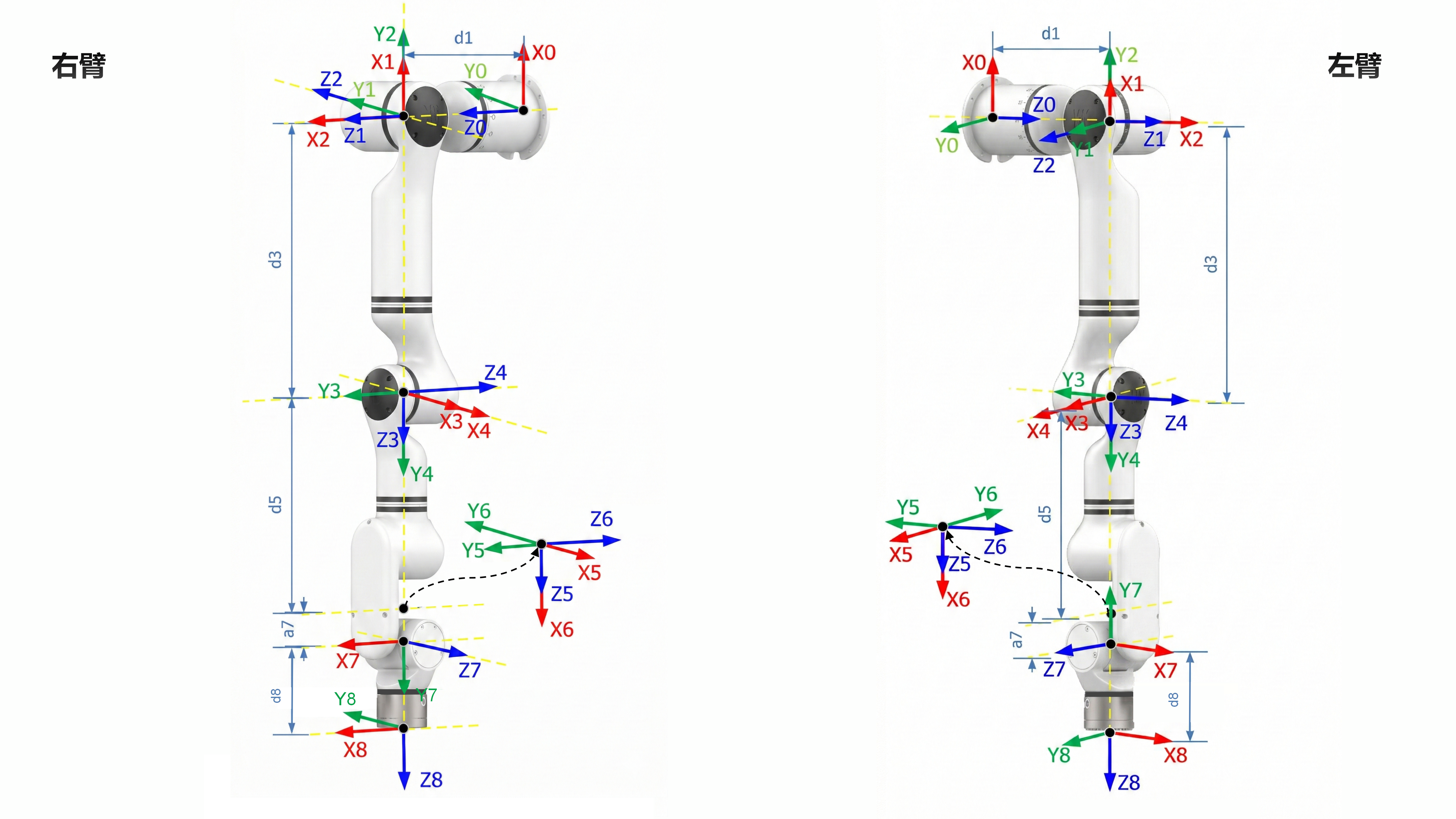 右臂RXR75系列MDH参数(改进D-H参数):
